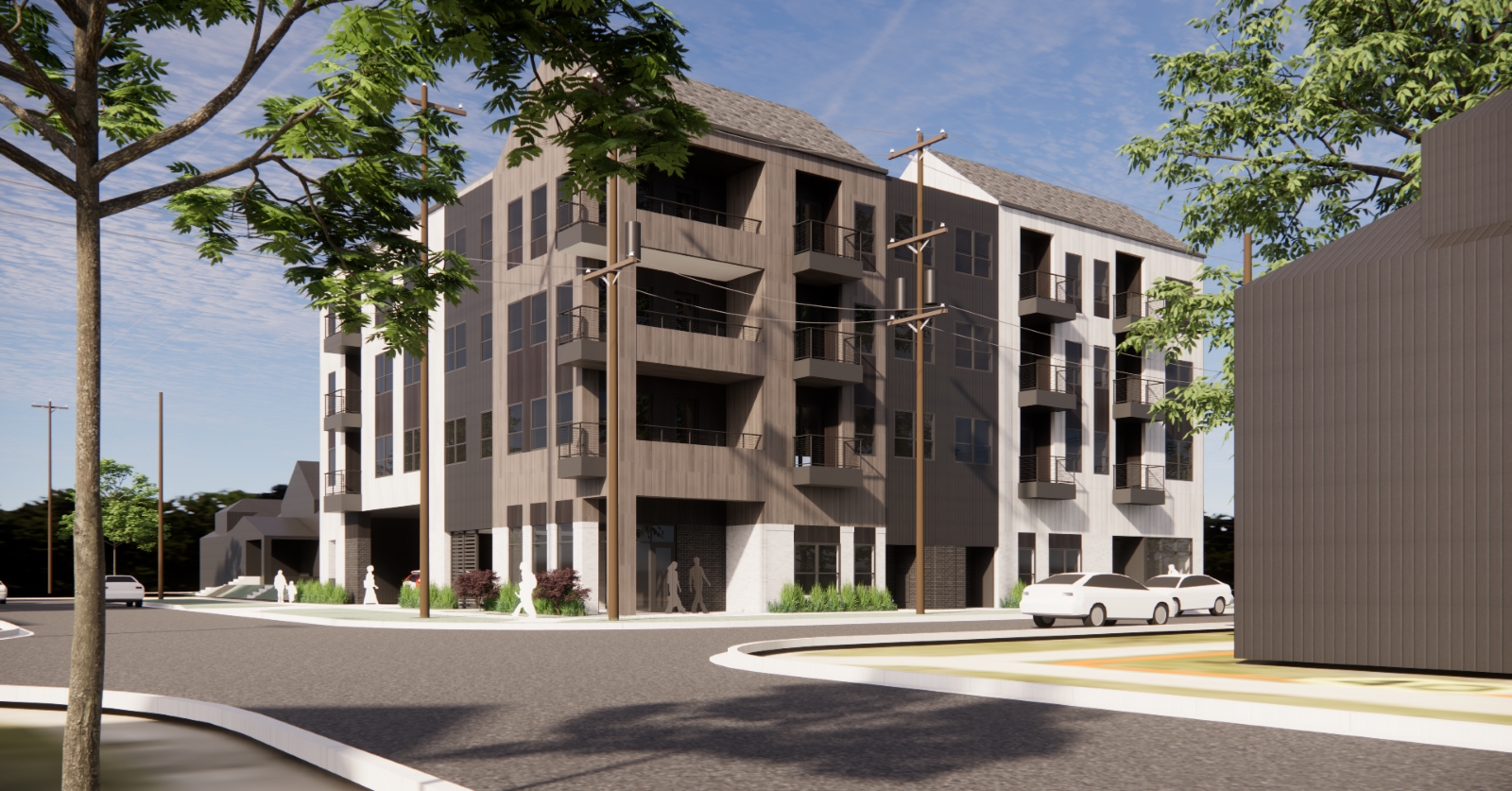 To the west, a four-story residential building with a welcoming lobby and on-site leasing office will mark a prominent entry point to the neighborhood. Within the site, a mix of three-story walk-up apartments and two-story townhomes—ranging from 12 to 24 units per building—will provide diverse housing options and foster a sense of community. Private drives will create an efficient internal road network while maintaining open access for pedestrians and cyclists. Walking paths and shared amenities will connect seamlessly to the surrounding neighborhood, ensuring Haslett Village serves not only its residents but the broader Meridian Township community.
