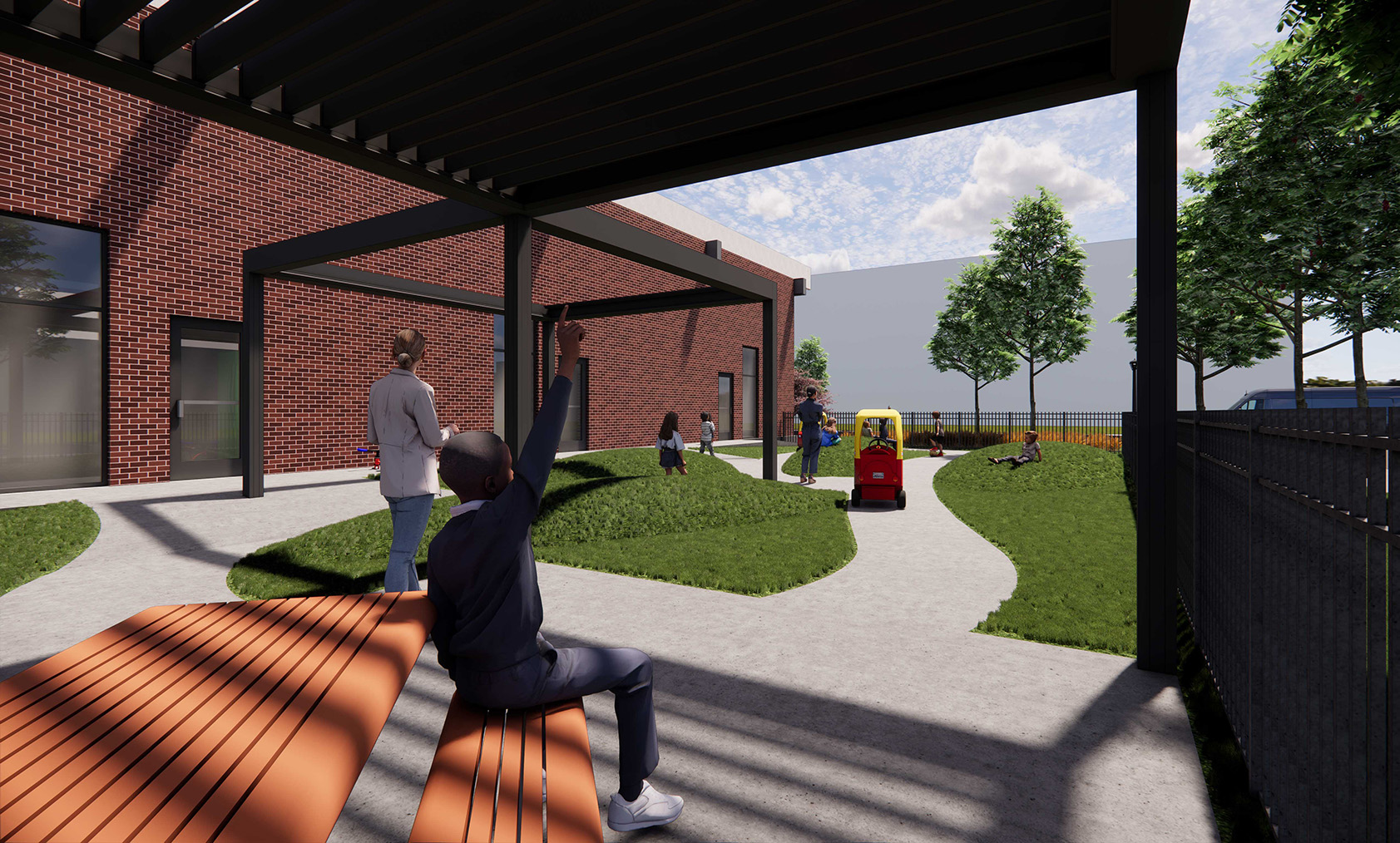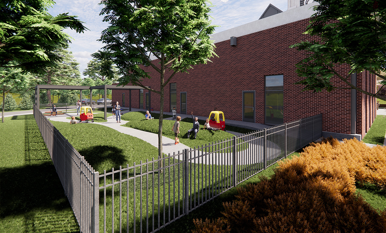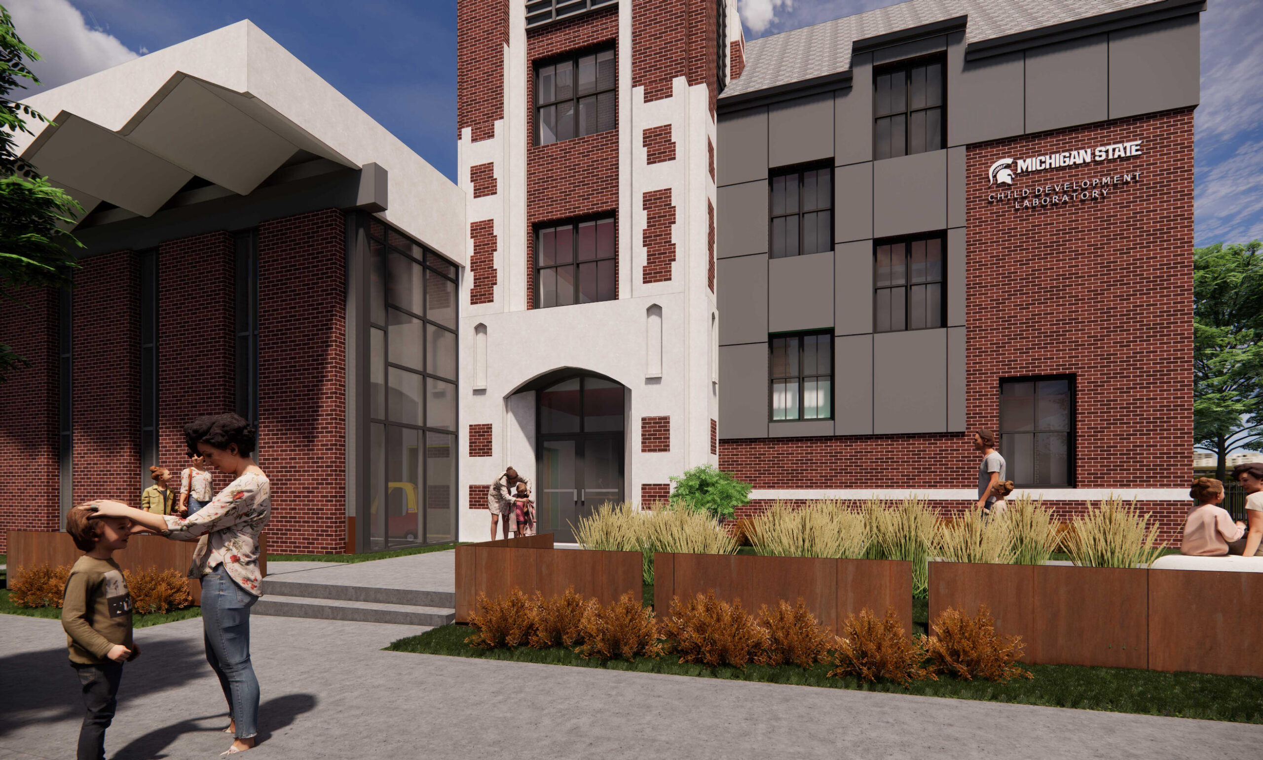 Originally built in 1927 as the Olivet Baptist Church, this 19,350 SF, three-story structure has undergone multiple renovations. Through a thoughtful adaptive reuse approach, the Gillespie Group, Michigan State University (MSU), and Integrated Architecture are transforming the building to house the MSU Child Development Lab, a vibrant center for early childhood education. The design strikes a balance between historic preservation and modern functionality, incorporating natural forms, patterns, and processes to create a nurturing environment. Large windows allow for enhanced natural light, while warm materials and organic shapes create a sense of comfort and exploration. The new program features classrooms for infants, toddlers, and preschoolers, as well as an activity gym, offices, and a welcoming entry and commons area. Flexible learning spaces support various teaching methods, while open sightlines ensure safety and connectivity. By integrating biophilic design principles and preserving key architectural elements, the project breathes new life into the historic structure, creating an inspiring space where children can learn, play, and grow.